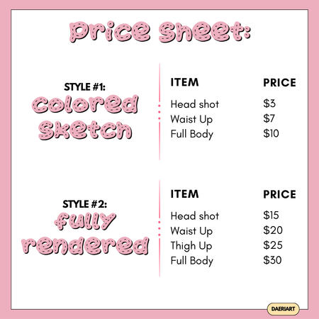 ★ Colored sketch commissions take around 1 hour - 3 days to finish. Whereas, fully rendered commission takes around 3-20 days to finish. You will be notified in case of delays due to the amount of work I have.